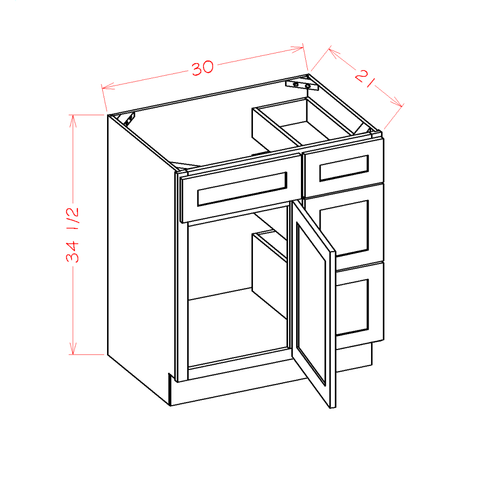 CAW-V3021DR | Casselberry Antique White Vanity Combo Base Cabinet with Drawers Right - 30"W x 34-1/2"H x 21"D -1D-3DR-1FDR |