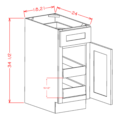 EW-B182RS | Edgeline White Two Rollout Shelf Base Cabinet Kit - 18"W x 34-1/2"H x 24"D -1D-1DR-2RSA |