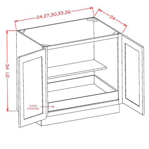 DOUBLE DOOR SINGLE DRAWER TWO ROLLOUT SHELF BASE KITS