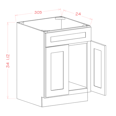 SC-FSB30 | Shaker Cinder Farm Sink Base Cabinet - 30"W x 34-1/2"H x 24"D -2D |