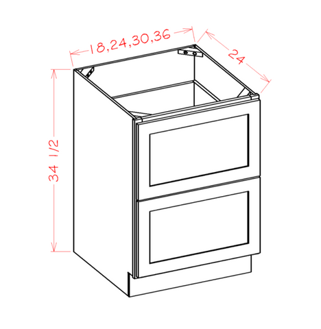SW-2DB24 | Shaker White Two Drawer Base Cabinet - 24"W x 34-1/2"H x 24"D-2DR |