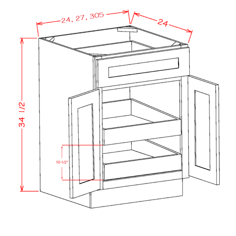 DOUBLE DOOR SINGLE DRAWER TWO ROLLOUT SHELF BASE KITS